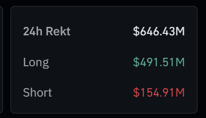 In the past 24h alone, there has been $646M in liquidations, mostly composed of longs.