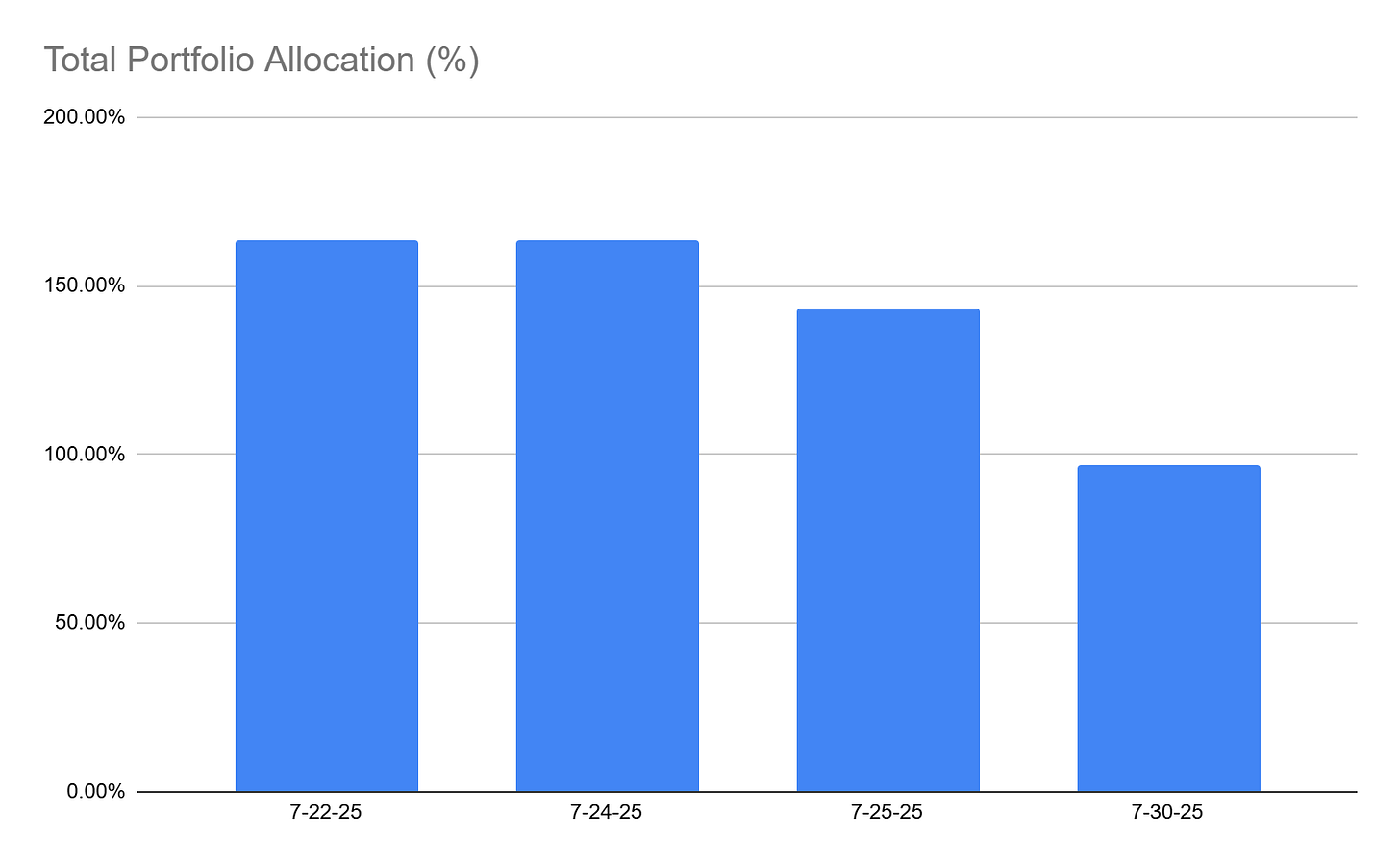 The portfolio total allocation now stands at 100%. At one time we had over 1.5x of our portfolio in the market, which was quite aggressive, but during times when signals are really strong, I have budget for it.