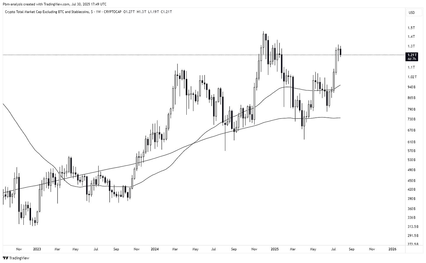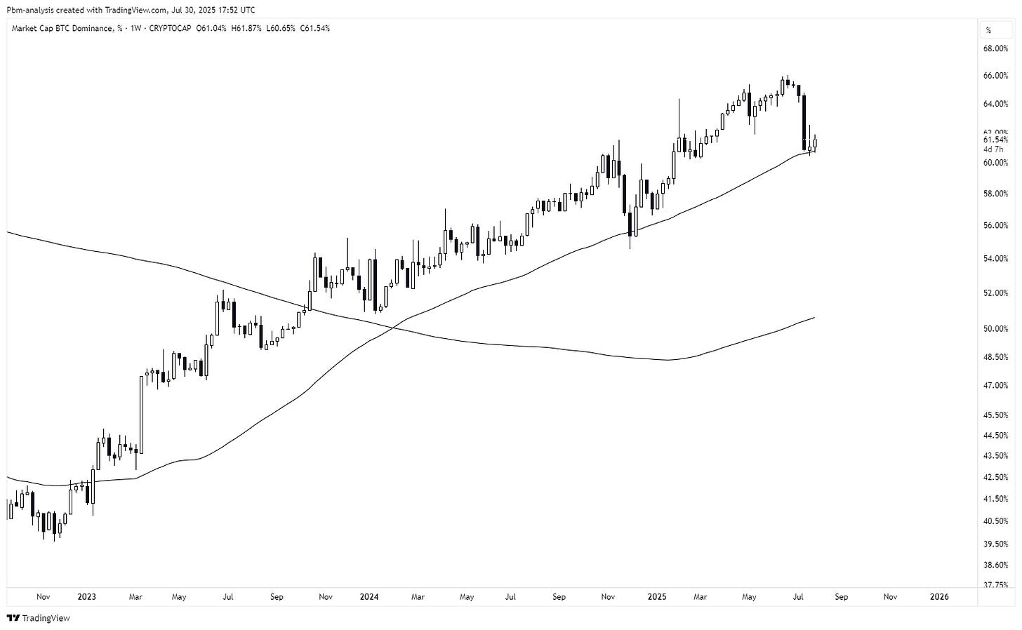 The altcoins market is quite strong still. Don’t forget that altcoins have rallied 70% off the June lows and is now having a 7% drawdown. People have the tendency to use too much leverage and not allow the market to work for them. I truly believe that most traders would be much better off just trading spot, so that they are forced to have less exposure on, and just chill on a daily/weekly timeframe.