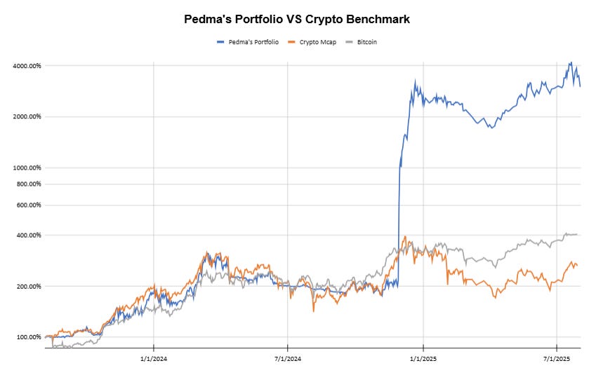 Below, here’s some rough statistics of the real performance after fees of my crypto trend system for the past 2 years.