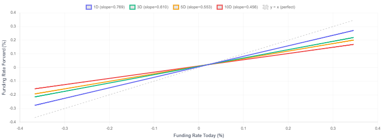 This tells us that if we’re trading within that 1d-5d window we have a reasonable expectation to get paid funding during those days. All that we should care for is how much we’re getting paid vs the costs of trading in an out. Topic for later!