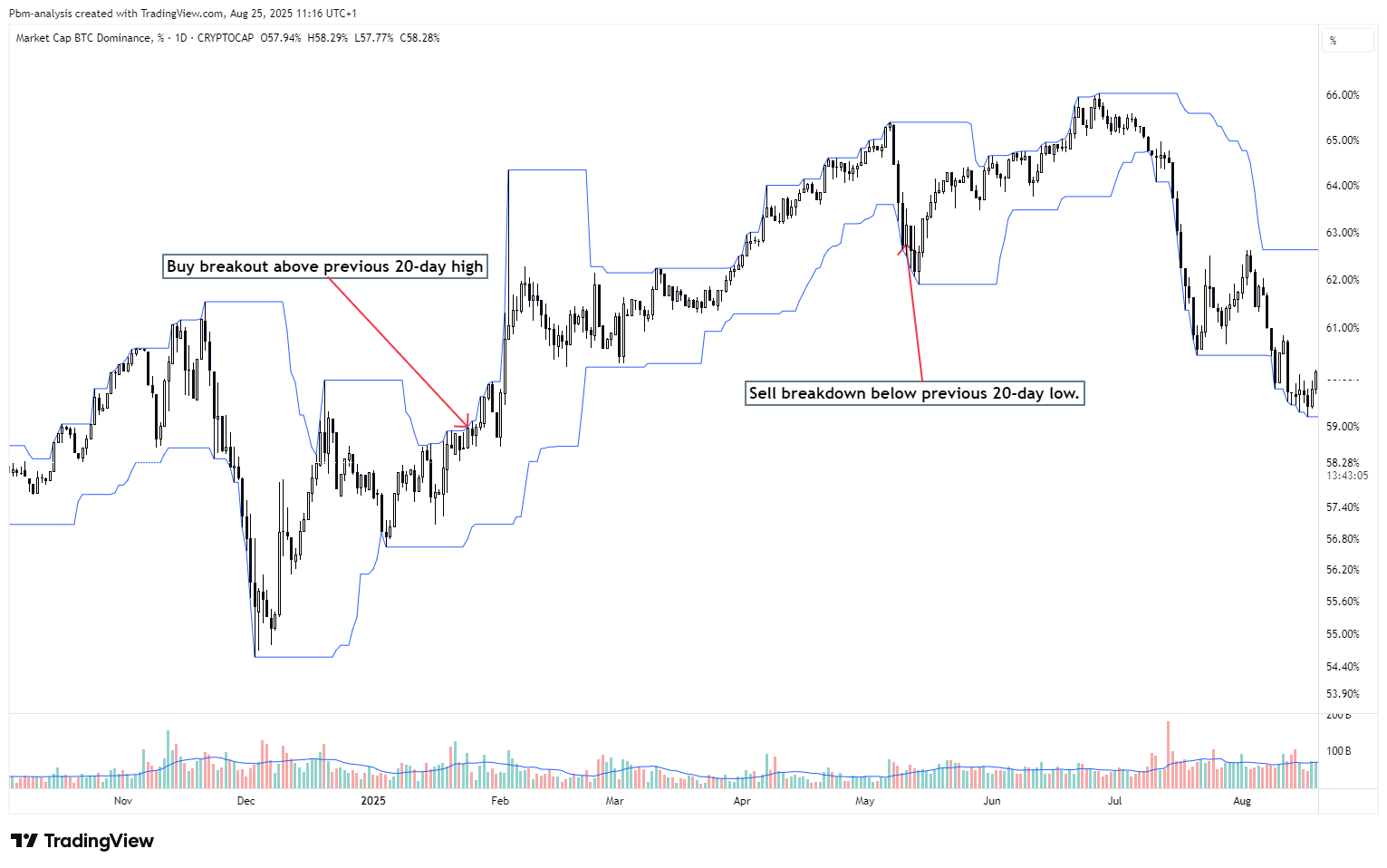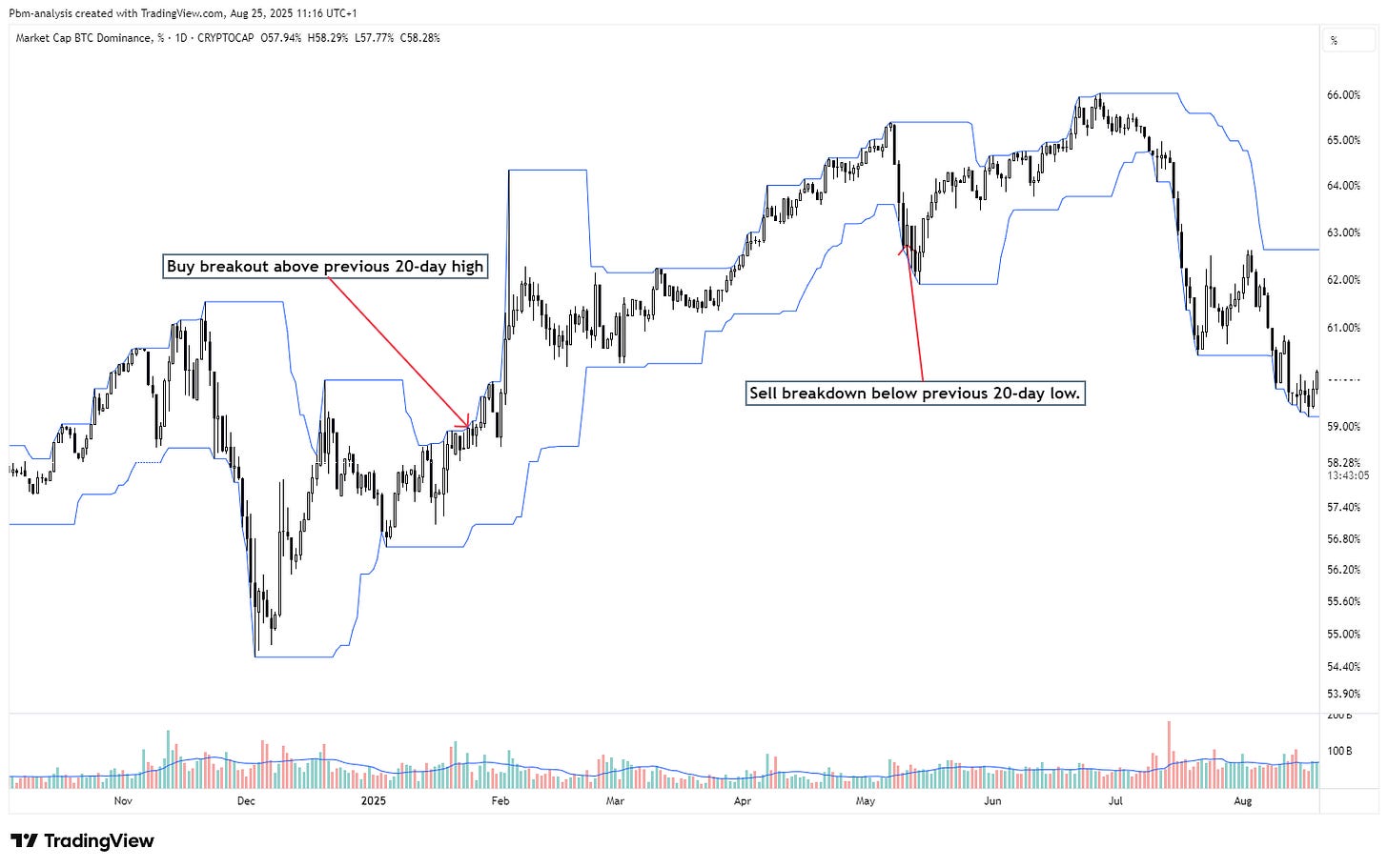 Imagine that you’re buying 20-day high breakouts and selling 20-day low breakdowns. A common and simple trend-following signal.